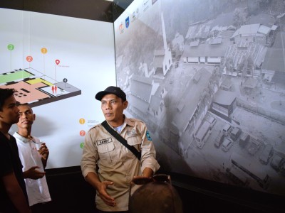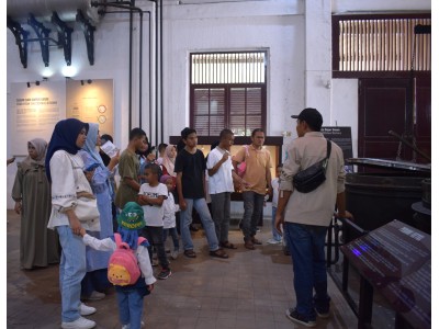 Pemandu Menjelaskan Sejarah gudang ransoem dan IPTEK Center kepada siswa dan orang tua